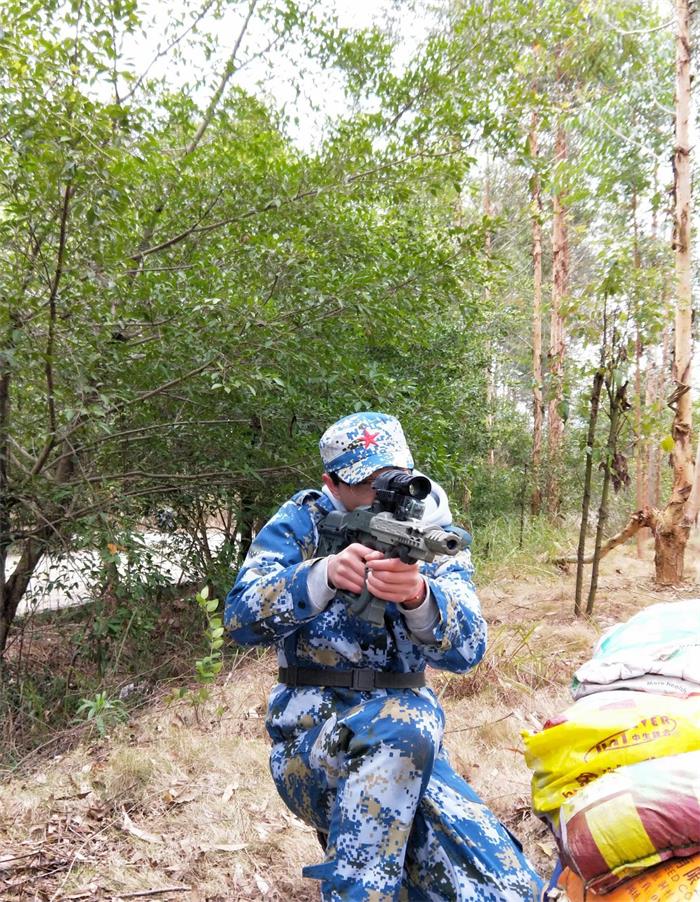 兩隊隊員在隊長的指揮和布陣下,進(jìn)入訓(xùn)練陣地,時刻準(zhǔn)備著殲滅敵軍,有的采取主動出擊、搶占先機(jī),有的采取堅守陣地,有的迂回運動,有的隱秘草叢,有的左右夾擊,一時間廝殺的難解難分,點射聲掃射聲此起彼伏。
