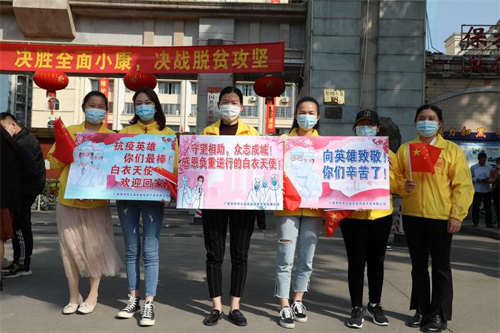 4月15日下午,賀州支援湖北醫療隊33名隊員圓滿完成工作任務凱旋而歸。賀州正贏實業公司黨支部組織全體黨員干部職工一行到賀州大道迎接英雄歸來,開展“致敬英雄,擔當作為”主題黨日活動。