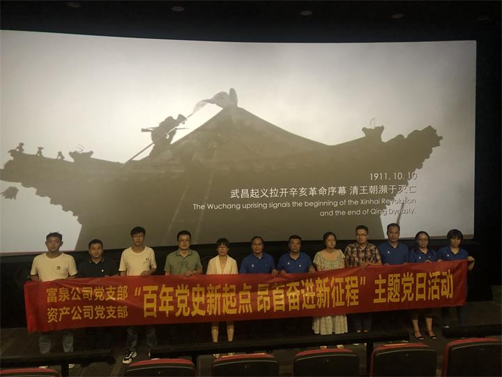 觀展結束后,為進一步引導黨員干部重溫黨史、傳承精神、洗滌初心、勇擔使命,以更加奮發有為的精神狀態履行為民服務的初心,擔負起新時代職責使命。富泉公司黨支部、資產公司黨支部全體黨員一同走進電影院,觀看了紅色電影《1921》。該影片以時代“橫截面”視角切入,聚焦1921年前后的故事,全景式重現了百年前波瀾壯闊、開天辟地的歷史時刻,講述了一群來自五湖四海平均年齡僅28歲的熱血青年們,突破國際各股復雜勢力的監控和追蹤,聚集上海召開中國共產黨第一次代表大會,見證了中國共產黨成立的歷史故事。這次觀影是一次令思想靈魂經受洗禮的生動黨史學習教育課,對于黨員體悟建黨的艱辛歷程,堅定理想信念,重溫入黨初心有著極為重要的意義。