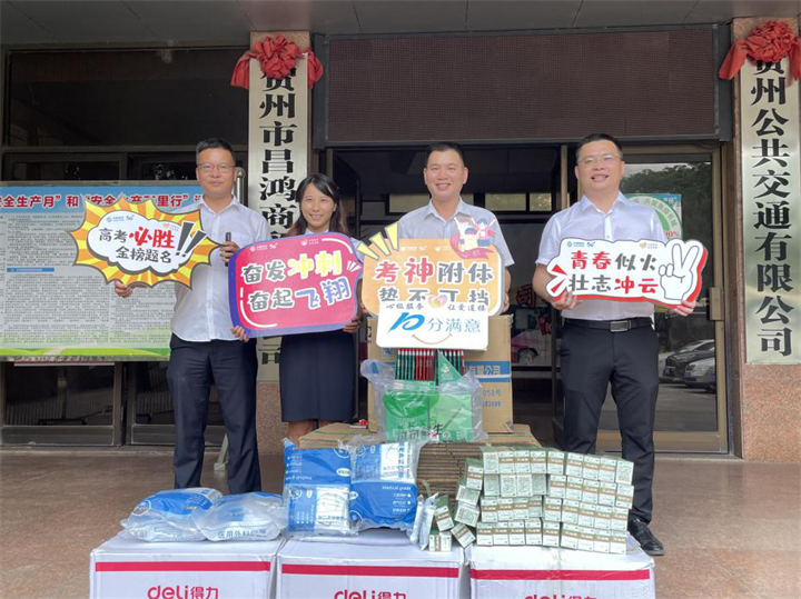 為確保考生能夠順利進行考試,公交公司聯合賀州移動公司,準備了“愛心助考物資”箱,內放置2B鉛筆、口罩、風油精、文具袋、扇子等考生必備的應急物資,以供考生應急使用。