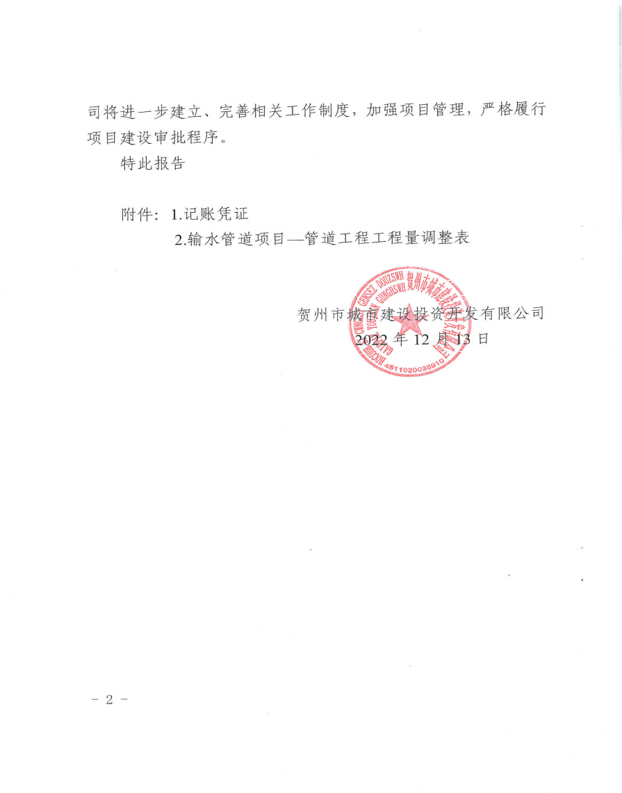 城投公司關于望高至擔桿嶺水廠原水輸水管道項目結算審計發現問題整改情況報告