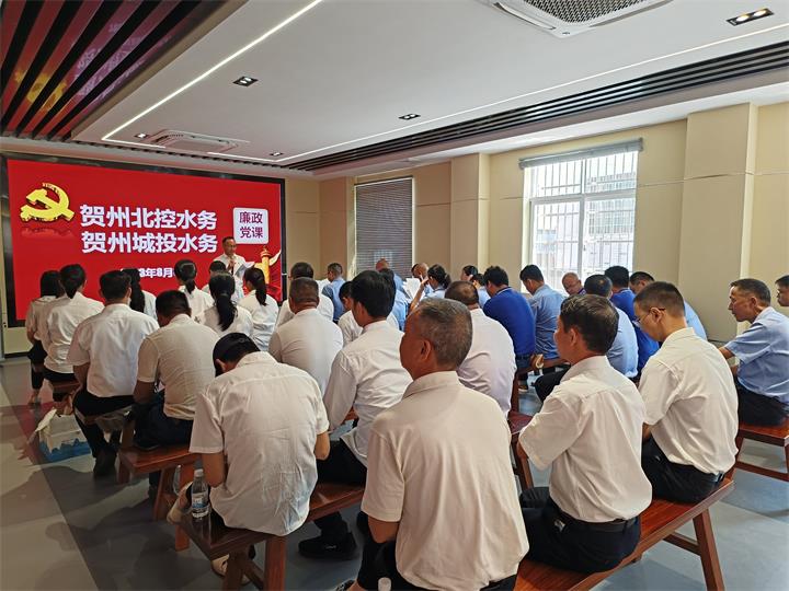 賀州市城投水務(wù)有限公司黨支部、廣西賀州北控水務(wù)有限公司黨支部全體黨員參加活動(dòng)。