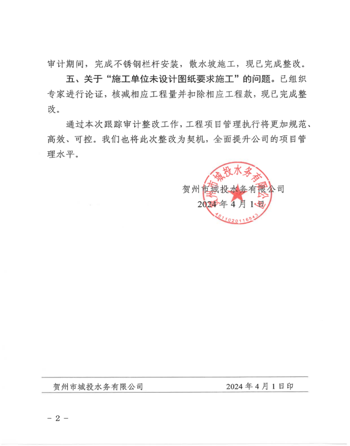 賀州市城投水務(wù)有限公司關(guān)于賀州市城東污水處理廠建設(shè)工程跟蹤審計