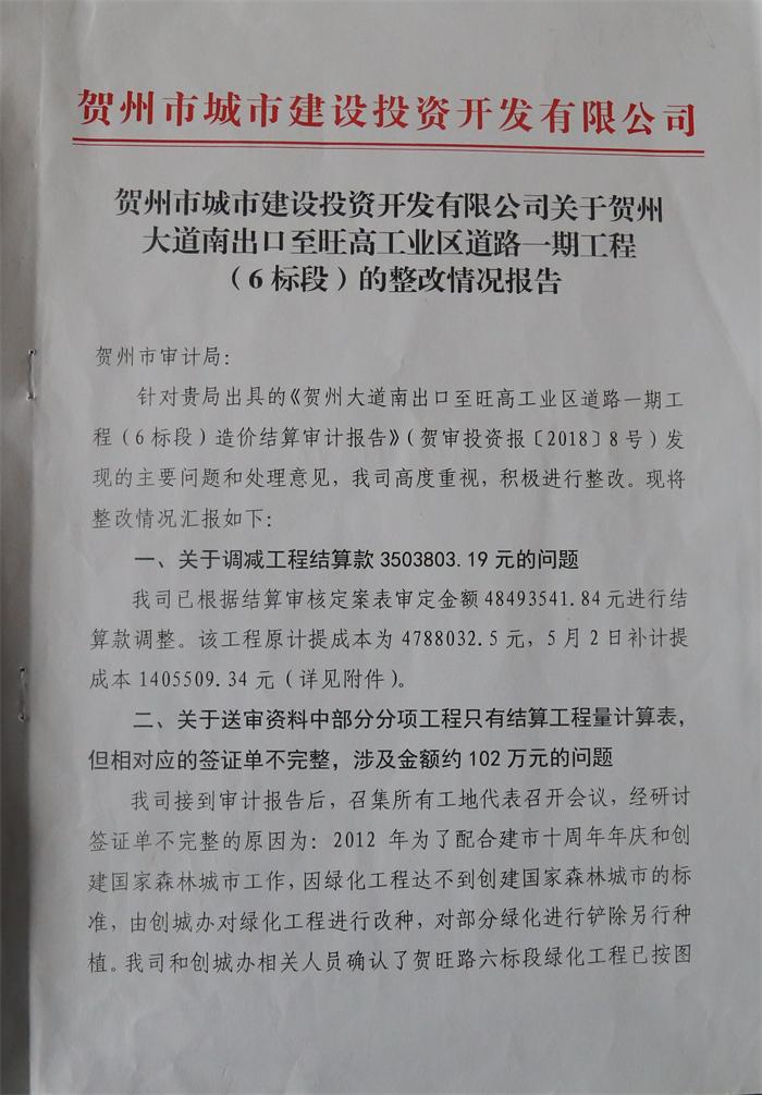 關于賀州大道南出口至望高工業區道路一期工程(6標段)的整改情況報告2018-07-13