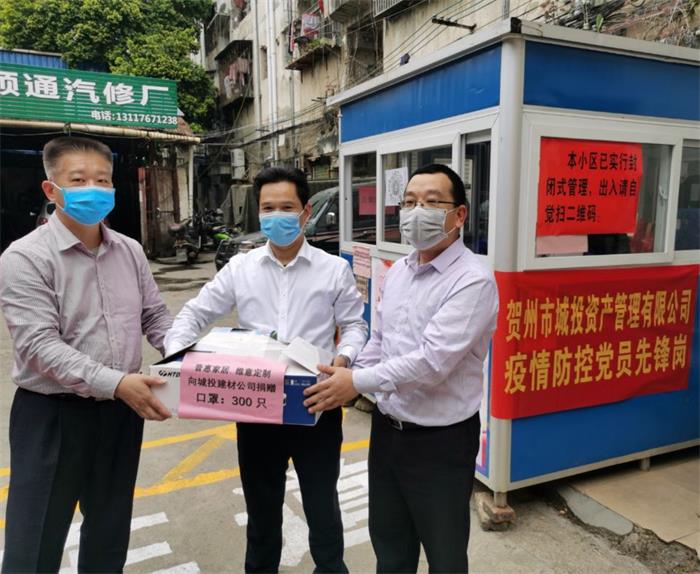 2月26日,甲供材供應商惠普貿(mào)易公司董事長黃普干代表該公司向城投資產(chǎn)管理有限公司疫情防控黨員先鋒崗捐...